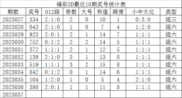 皇冠球盘代理 037期发哥福彩3D预测奖号:通杀一码参考